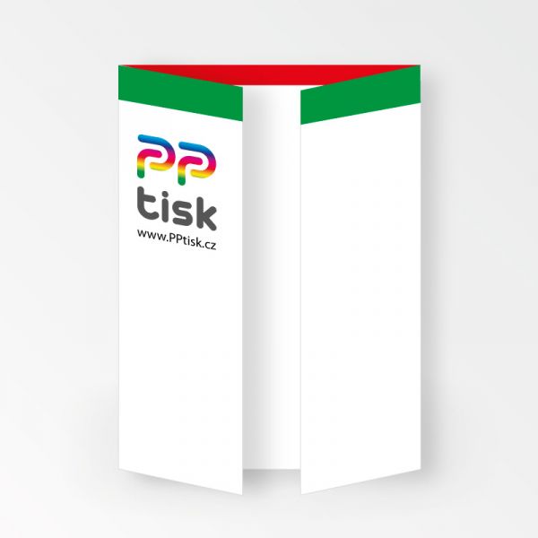 Tisk skládané karty o velikosti A4 - okénkový lom / jakoby 6 stran. Oboustranný tisk na kvalitní křídový papír o gramáži 150 g nebo dohodou.