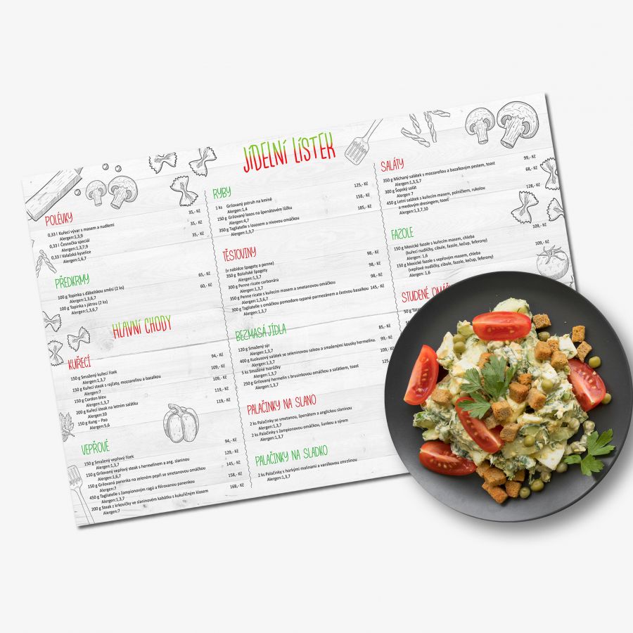 Tisk prostírání pro restaurace